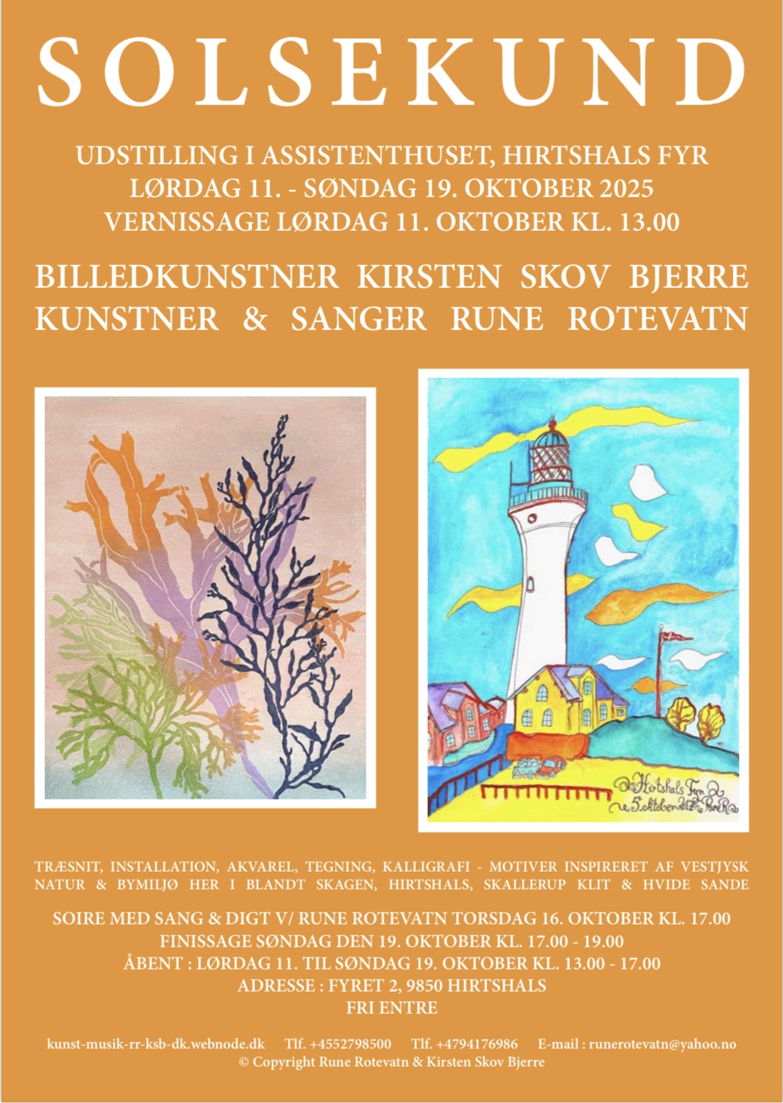 Multikunstner Rune Rotevatn og Film - & videoinstallationskunstner Kirsten Skov Bjerre viser kunst inspireret af kunstnernes hjem, forskellige landskab, flora & dyreliv, lavet i blæk, akvarel & grafik, samt Performance, film og videoinstallation.